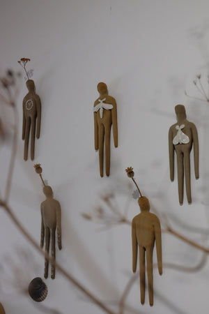 From my garden during the different seasons, a figure I walk by on the street, or a texture I feel and then incorporate or use as an imprint.